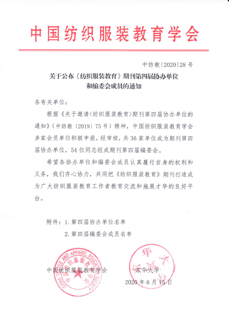 关于公布《纺织服装教育》期刊第四届协办单位和编委会成员的通知